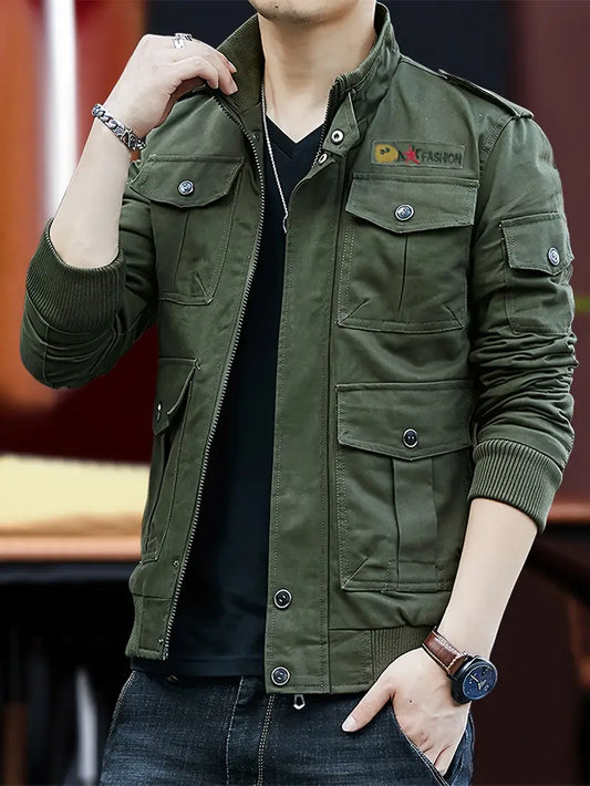 Ciepła, wiatroszczelna bomberka męska z jedwabiu, z kieszeniami