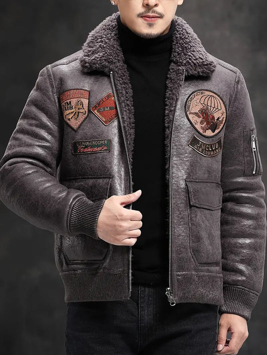 Krótka męska kurtka bomberka z ekoskóry i sztucznego futra