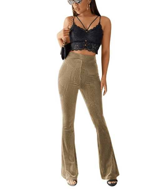 Luźne, rozkloszowane spodnie z wysokim stanem, zrobione z weluru